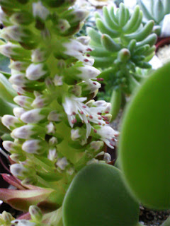こっちは同じオロスタキス属の「昭和」です。 「爪蓮華」と区別がつかないんですが同じなんでしょうかね? とにかく長~く花芽を伸ばして塔のようです^^; チラホラ咲き始めました!